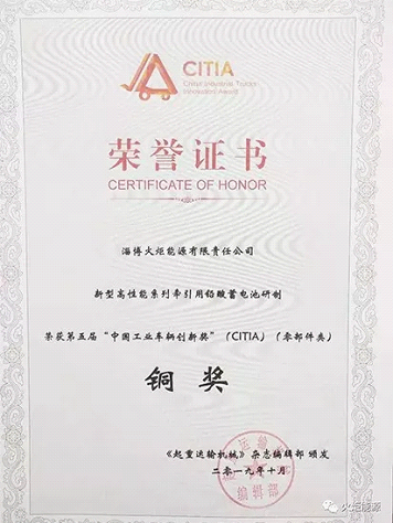 10月18日,中国工程机械工业协会工业车辆分会七届三次会员代表大会暨2019年年会在河北唐山胜利召开。会议对前期评审的第五届“中国工业车辆创新奖”(CITIA)(零部件、管理和服务类)获奖企业进行了表彰,风帆火炬公司作为十一家获奖企业之一,参评的“新型高性能系列牵引用铅酸蓄电池研制”项目荣获铜奖,成为蓄电池类项目唯一获奖厂家。