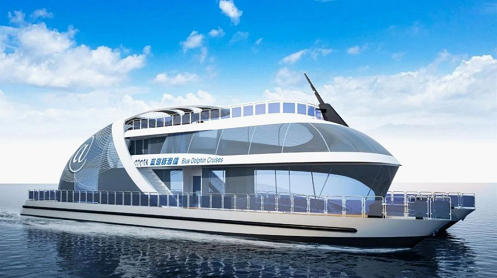 280客位珠江夜游船总长38.8m,型宽12.0m,型深3.2m,航速10.0kn,是粤港澳大湾区首艘入级商业运营新能源客船,外观设计新颖独特,纯电池动力突显低噪音、低排放、绿色环保的优势,对于推动粤港澳大湾区旅游和交通产业的绿色发展具有重要意义。