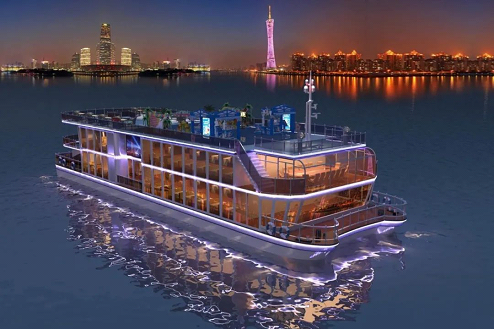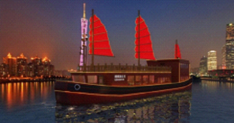 160客位“阔阔真公主号”游船总长36m,型宽8m,型深3m。该船是仿七百多年前元朝忽必烈女儿阔阔真公主远嫁波斯时乘坐的古船建造而成,有“福船送福”的寓意。建造后举办古港帆影灯光秀行走珠江,夜游展示亚洲文化交流的传奇,是不可多得的文化遗产。