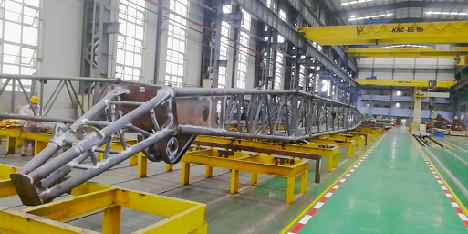 生产过程中,主管计调员、党员徐言忠虽然即将面临退休,但他依然立足岗位,主动作为,努力克服困难,认真清理编制详细缺件清单,来回奔波于下料中心和主承制部门,积极沟通协调,努力保障材料齐套供应。装焊班组积极响应,安排精兵强将装配焊接该臂架结构。臂架结构形式复杂,分为臂架根部、中部、头部三段,钢管数量多。装配前,冷作师傅严格按工艺卡片和图纸要求清理核对来料钢管,认真将钢管切割坡口打磨圆滑,为后续焊接质量提供前提保障;装配时,高效协同,保质保量完成海工吊臂架结构件生产。