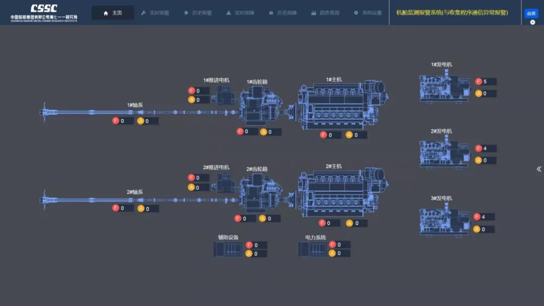 在通用功能的基础上,该系统实现了对LNG气体发电机组、直流配电系统、可逆轴带电机等设备的健康状态评估、故障诊断等功能,有效提升船舶混合动力系统的安全。其中,滑油油液在线分析装置为七一一所自主研发设计,可对滑油粘度、水分、铁磁颗粒和非铁磁颗粒浓度进行实时监测和变化趋势监测。