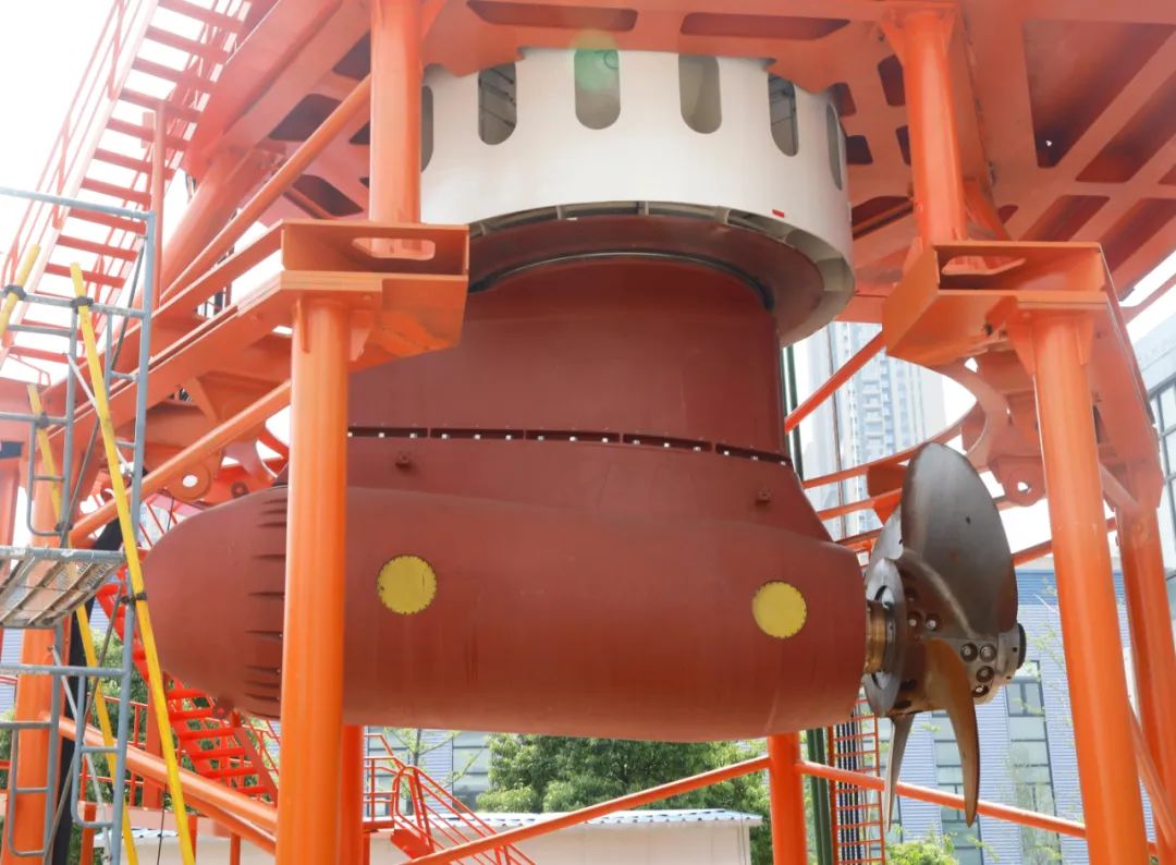 该6MW吊舱推进装置瞄准高冰级作业环境,对标国际领先水平,能适应PC3冰级作业环境,兼顾船舶航行和操舵功能,能提供 360°全回转和螺旋桨转速无级调节,对船舶推力方向和推力大小进行调节。主推进采用6相绕组永磁同步电机驱动,转舵系统采用变频电机驱动,推进电机、电液气滑环等核心部件均实现国产化,性能指标与国际同步。该吊舱推进装置还具备紧急停机、紧急回转、紧急避让、在线状态监测、远程健康管理等功能。