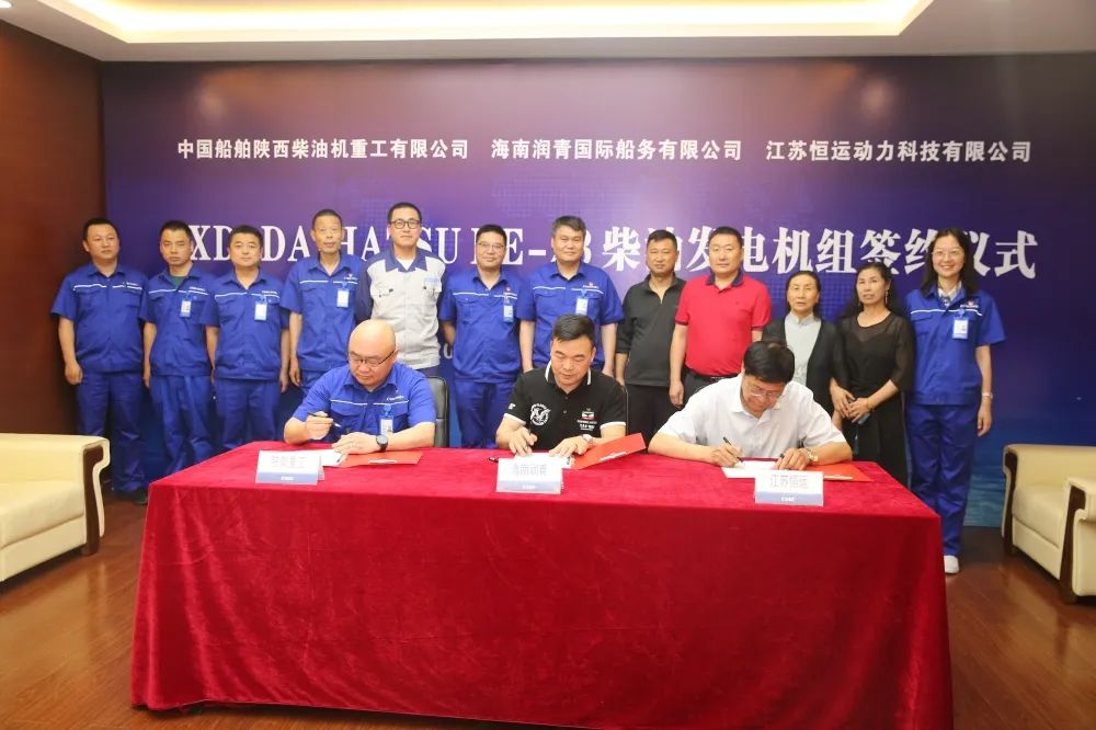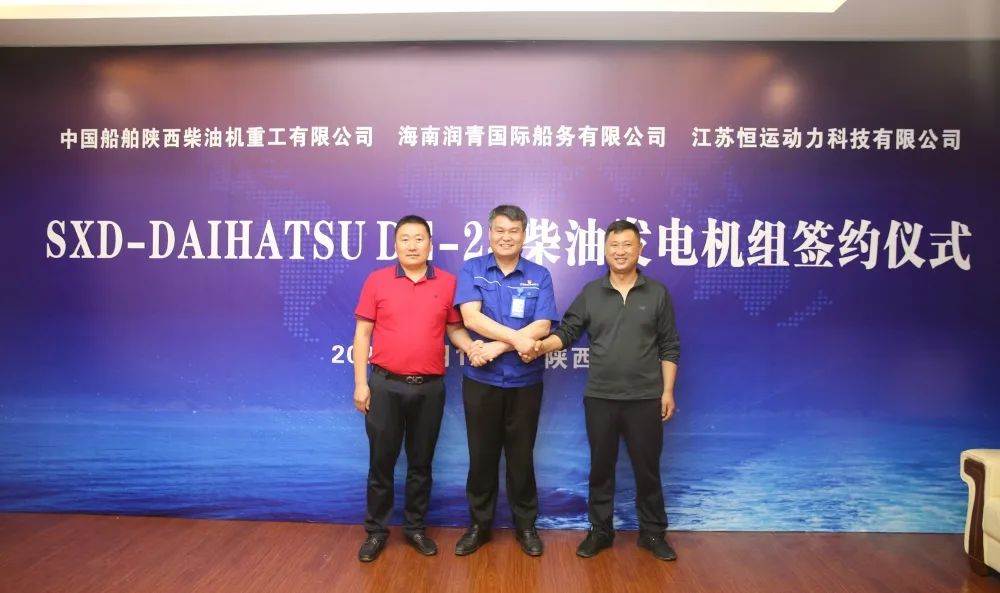 6月10日,中国船舶集团旗下beat365英国官方网站子公司陕柴重工首批SXD-DAIHATSU 6DE-23发电机组签约仪式在陕柴重工信息楼一楼会客厅举行,海南润青国际船务有限公司董事长刘长青,江苏恒运动力科技有限公司董事长王振山,陕柴重工党委书记、董事长赵同宾,日本大发公司驻厂技术总监李海鹏和相关单位负责同志及用户代表共同见证了签约仪式。