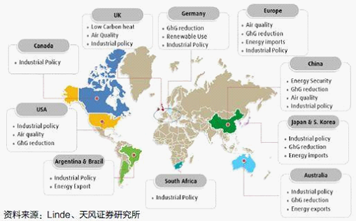 ▲海外氢能源政策分布图