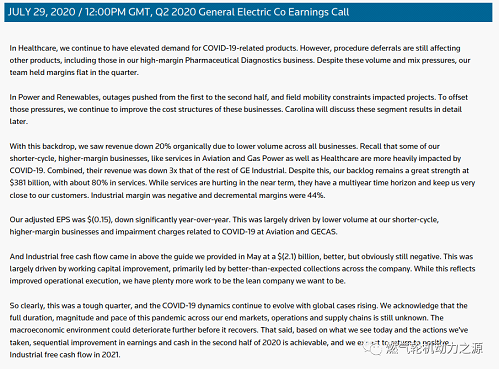 Courtesy: www.ge.com该公司在7月29日的10-Q文件中指出:“由于油价和经济放缓,客户预算紧缩,融资渠道受限,特别是在天然气发电领域,我们完成交易的能力受到了影响。”“展望未来,我们预计电力市场继续受到产能过剩的影响,增加维修安装基础,价格竞争的压力和不确定的交易时机关闭由于融资和在新兴市场和正在进行的工作的复杂性COVID-19的影响。市场因素,如提高能源效率和可再生能源普及率继续影响长期需求,”它表示。