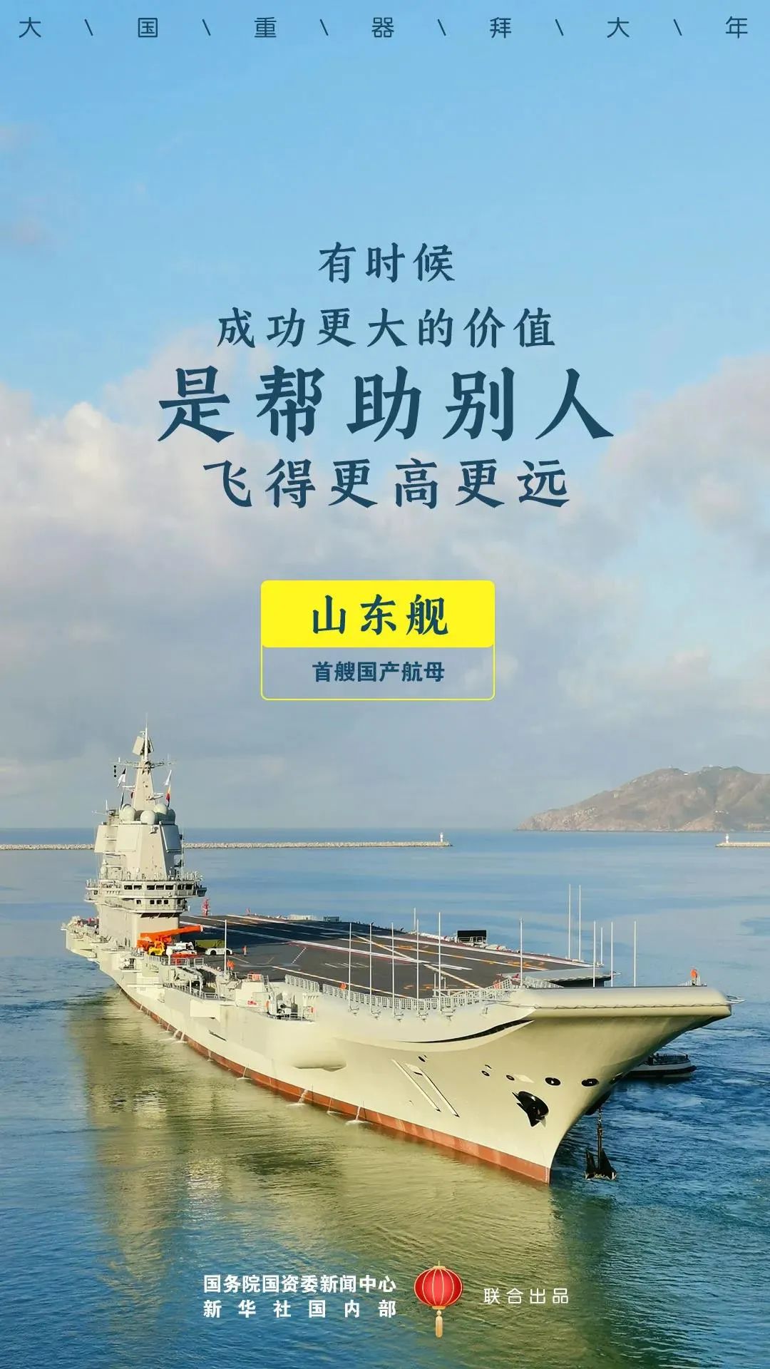 大年初一新年到! 中国船舶给您拜年啦! 知道您收到的祝福已很多 中国船舶的不一样 送您两个超级重磅 大国重器拜大年 山东舰 祝您牛气冲天,一路远航!