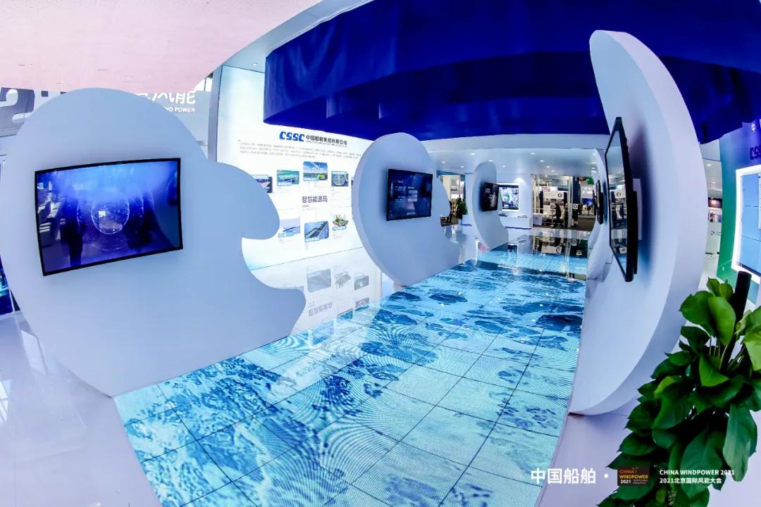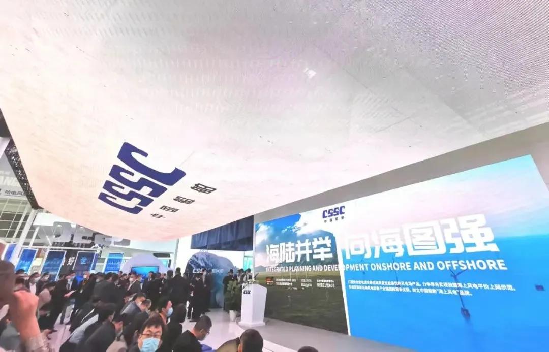 此次展会上,中国船舶集团以“创新引领、绿色发展强使命,海陆并举、向海图强显担当”为主题,在900平方米的历届风能展最大展台上,按照建设开发、整机制造、关键核心部件和产业配套四个版块分区展出。