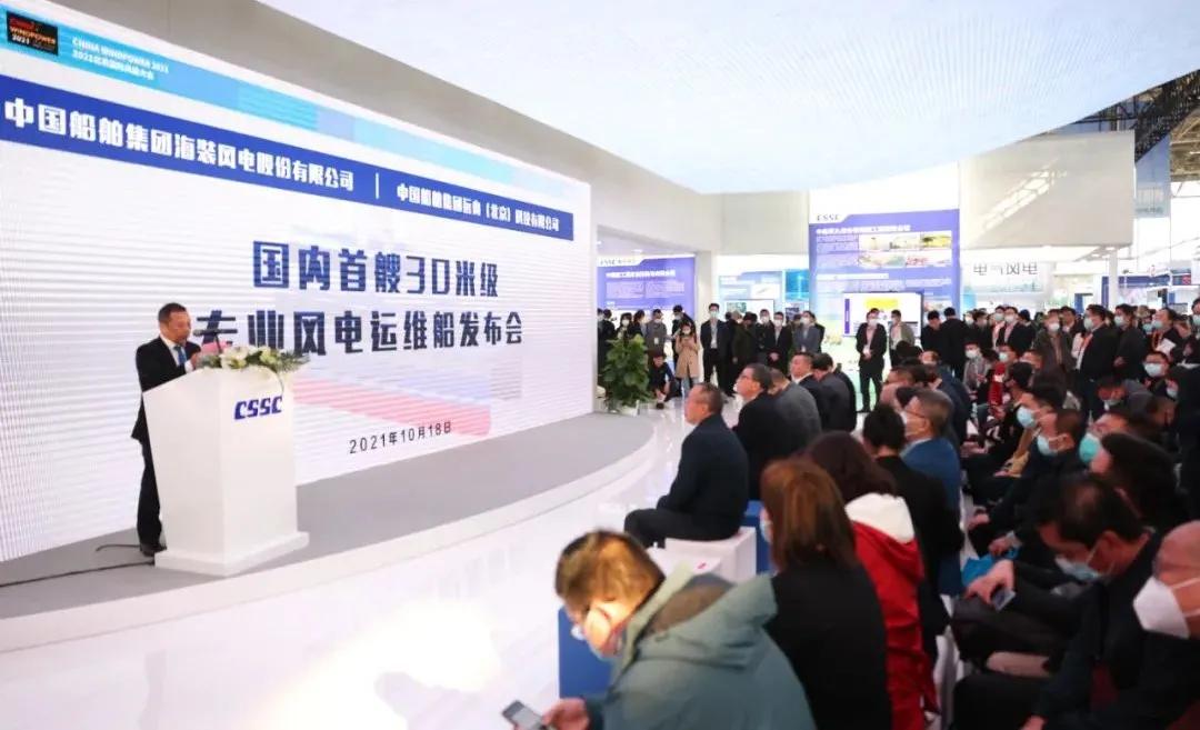 在风能展上,中国海装与远舟科技联合设计制造的国内首艘30米级专业风电运维船发布,最大装载38吨,可抗浪高4米,可搭乘12名运维人员和6名船员,具有高强度、轻重量的结构特点和优良的安全性、快速性、防腐性、耐波性等,将于今年正式投运。