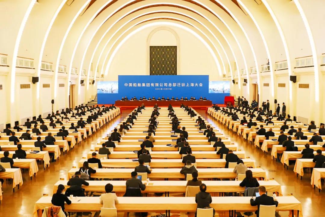 2021年12月24日,中国船舶集团有限公司总部迁驻上海大会在沪举行,全面开启中国船舶集团扎根上海、更好服从服务国家重大战略、加快建设世界一流船舶集团的新征程。上海市委书记李强、国务委员王勇出席并为迁驻后的“中国船舶集团有限公司”揭牌。