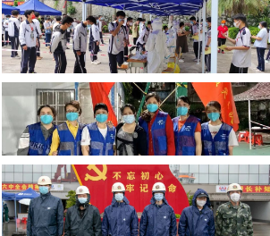 地处市区的广州公司,迅速组建了一支以党员为主的志愿者服务队,助力所在社区(鹤园居委会)开展全员常规核酸检测现场服务工作,以实际行动配合完成了6000多名居民核酸检测任务。该公司职教事业部2所学校2000余名学生分辖荔湾、黄埔两区,学校教职工主动作为,积极配合医护人员维护现场秩序、信息登记、查核健康码等,顺利完成2轮全员核酸检测工作。