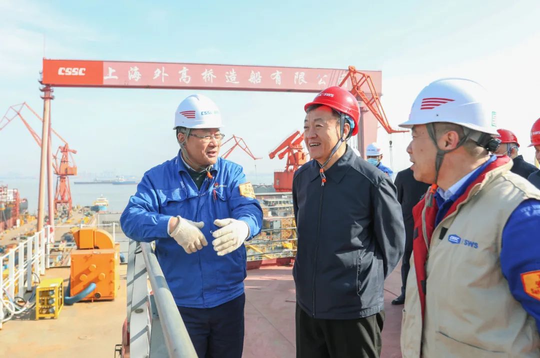 2月16日,中国船舶集团有限公司党组书记、董事长温刚到集团公司旗下上海外高桥造船有限公司调研,勉励外高桥造船广大干部职工深入贯彻落实党的二十大精神,踔厉奋发、勇毅前行,为集团公司建设世界一流船舶集团积极贡献力量。