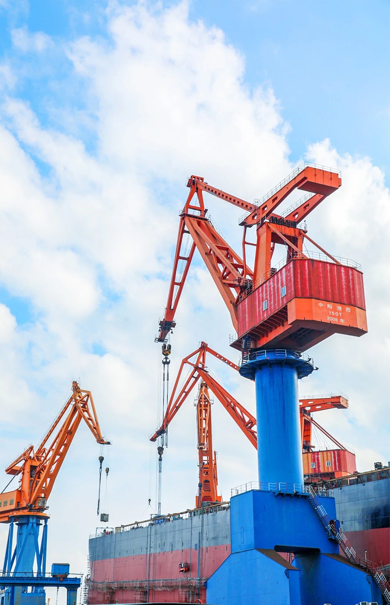 本幅作品拍摄于中船澄西主建船型82000吨散货船船台搭载过程中,高矮错落的吊臂构成了如音符一般的工作乐潮。