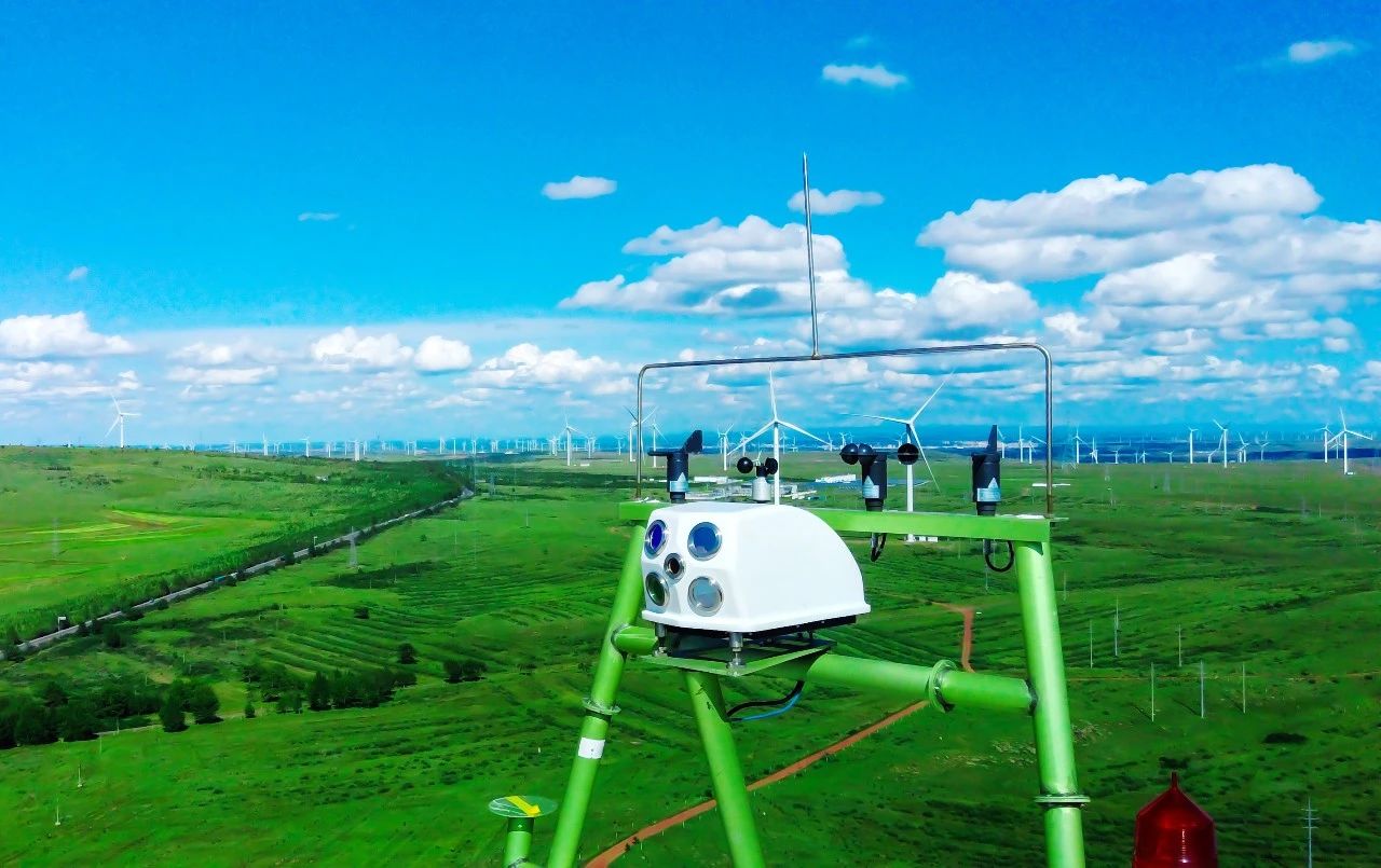 这是八院鹏力大气海洋公司的全国产化测风激光雷达,它可测量风速/风向、湍流强度、风切变等信息,是风电领域的超强辅助。它就像“高高在上”的观风者,在苍茫天空中等风来。