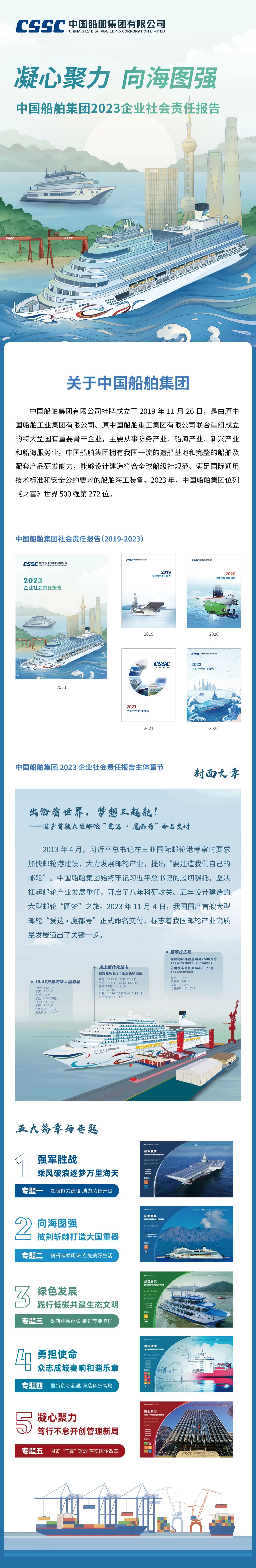 近日,中国船舶集团有限公司发布了《2023企业社会责任报告》(以下简称《报告》)。本报告是中国船舶集团正式发布的第五份企业社会责任报告。