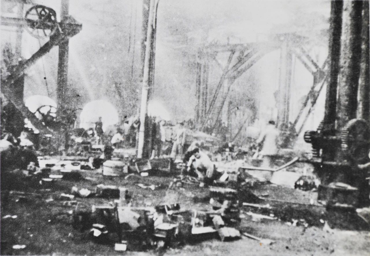 1949年5月上海,虽然江南造船所经历了英勇的护厂斗争,但此时的船坞、厂房、设备,均已遭受到严重的破坏。