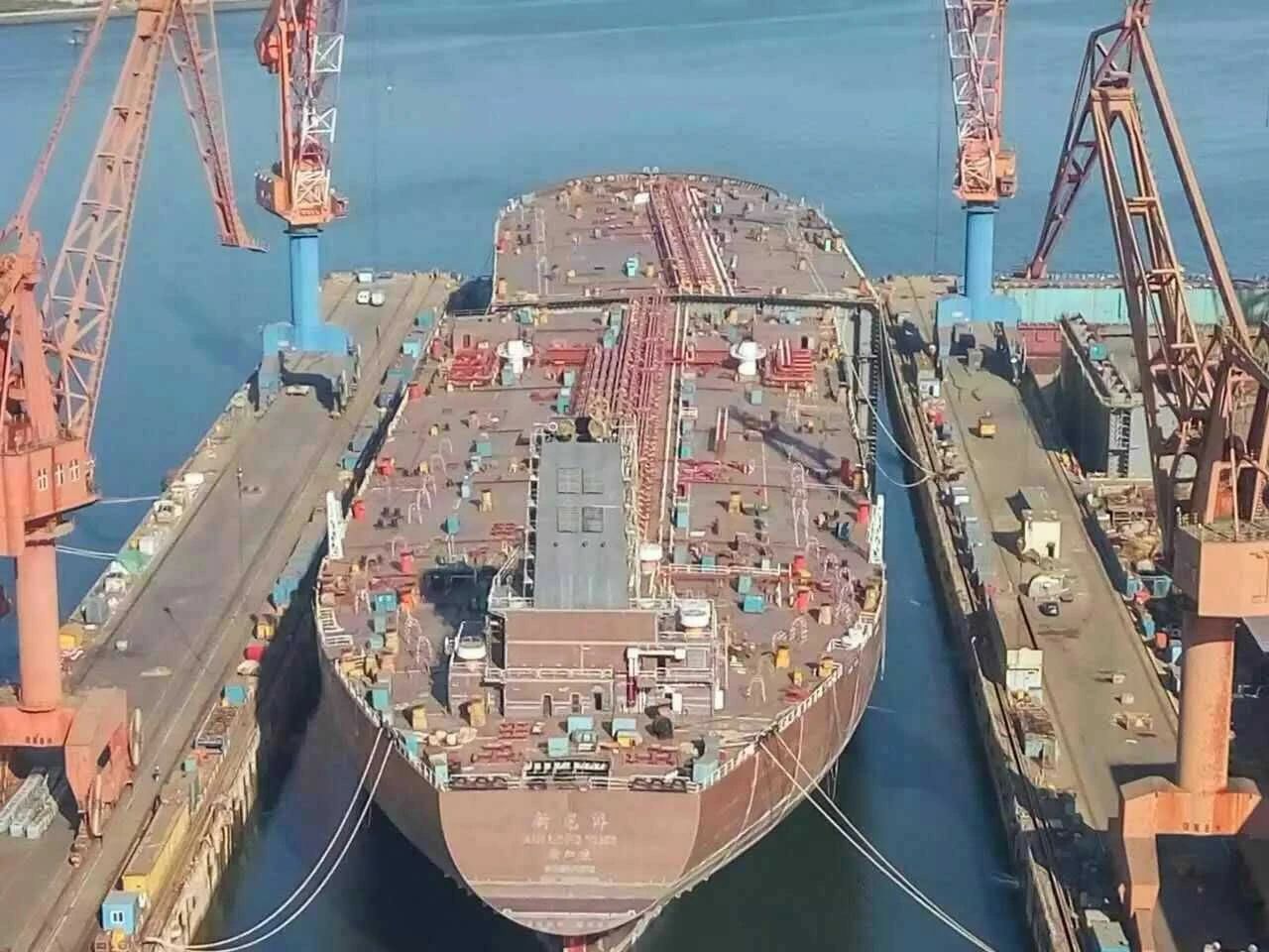 2024年广州,如今,龙穴基地建造的华南地区最大原油船32万吨超大型原油船“凯桂”号、“凯粤”号。