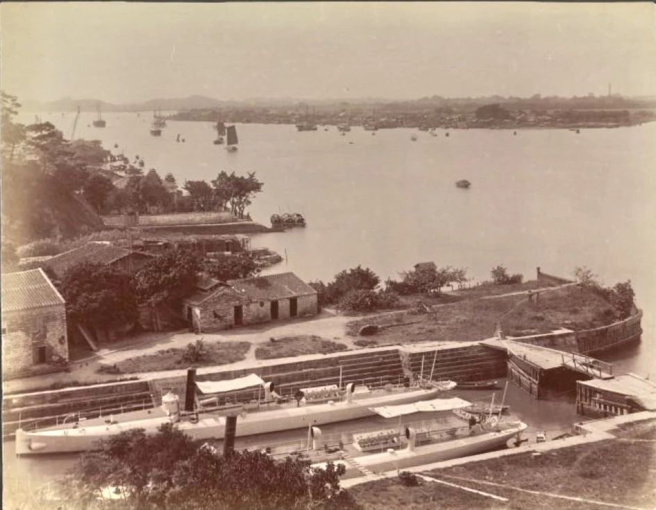 19世纪广州19世纪的柯拜船坞和录顺船坞。