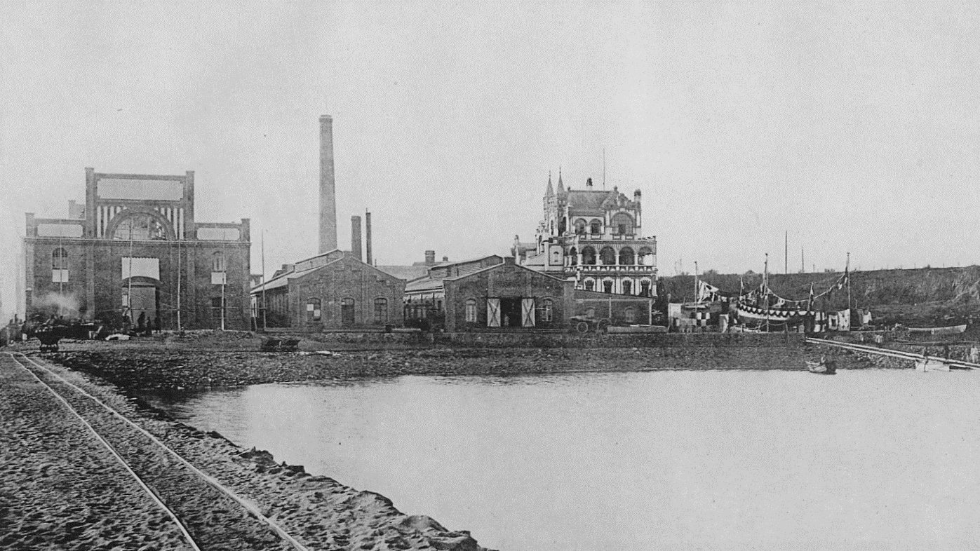 1905年青岛,1905年,船厂造出了被誉为“青岛之自豪”的1.6万吨“亚洲第一大浮船坞”和“东亚细亚第一大机器”——150吨起重机。