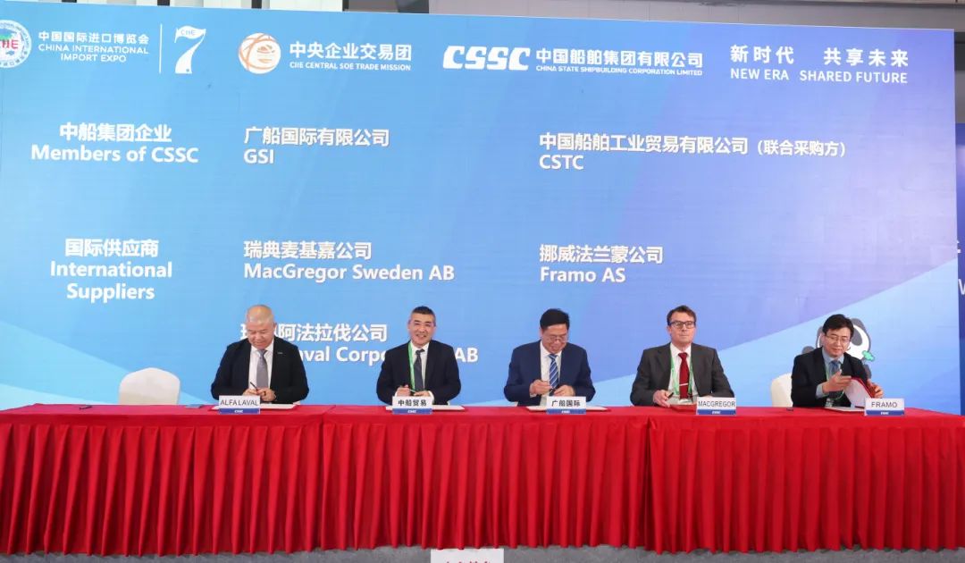 中国船舶集团有限公司党组成员、副总经理盛纪纲应邀参加第七届进博会暨虹桥国际经济论坛开幕式,出席11月6日下午举行的第七届进博会国资委中央企业交易团中国船舶交易分团采购集中签约仪式并致辞。