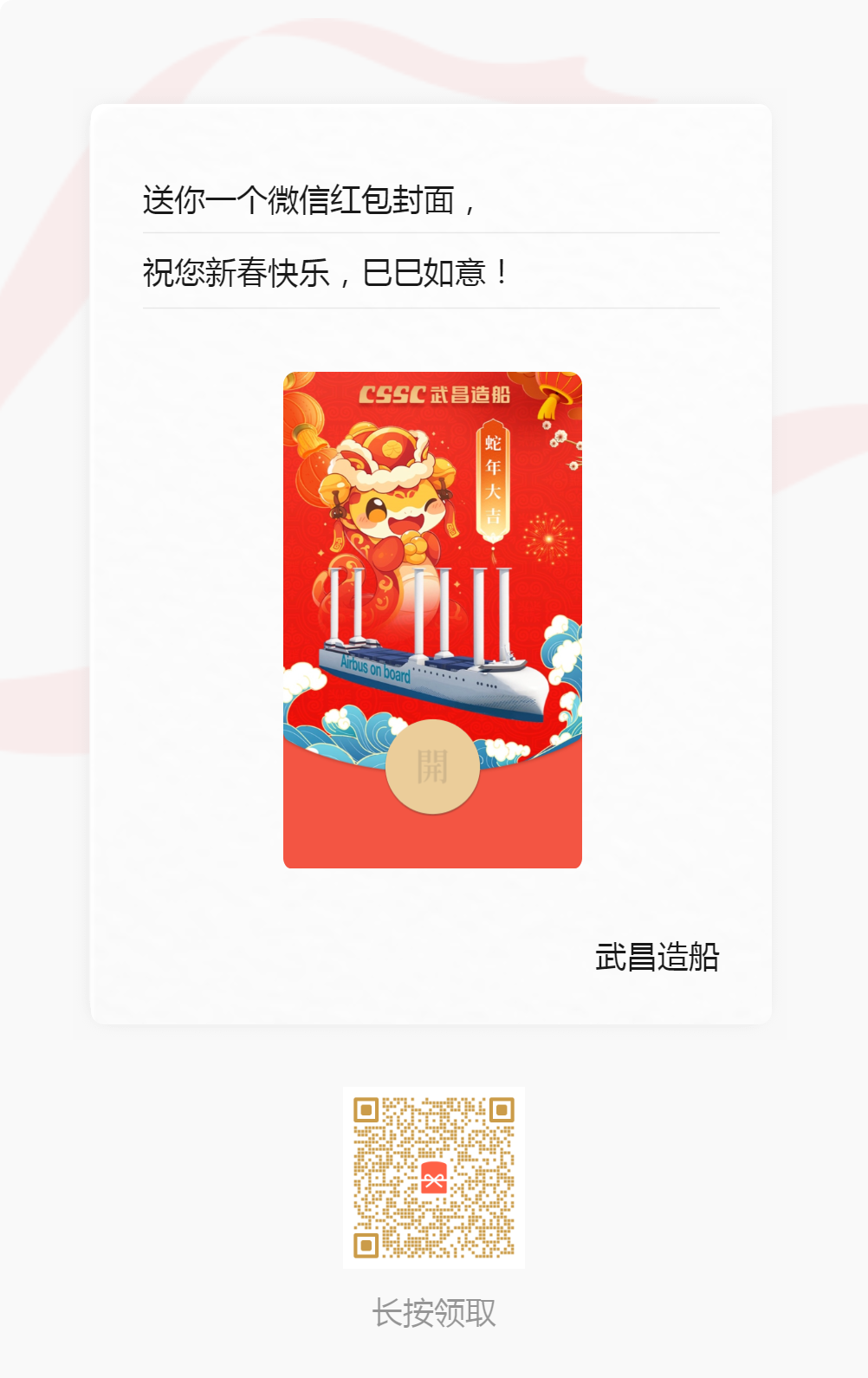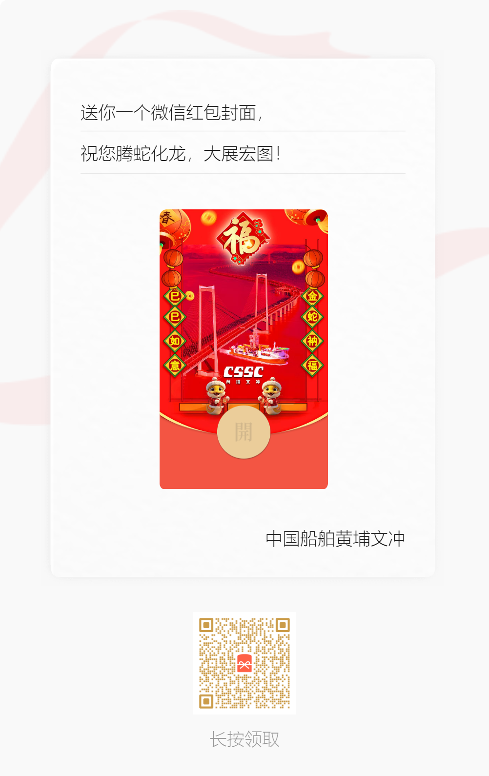 | 红包封面:武昌造船/黄埔文冲/七〇二所/中船发动机/中船动力/中船九院/中船邮轮/七二五所