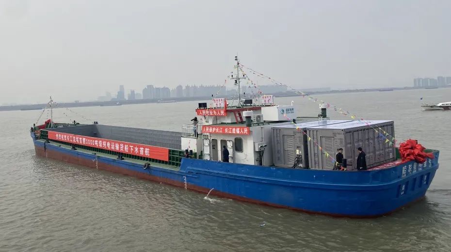 “船联1号”由国网江苏省电力有限公司联合相关部门和企业共同打造,是长江流域最大载重吨位的电动货船,将电能作为整艘船的唯一能源,实现零排放、低噪音、无污染。